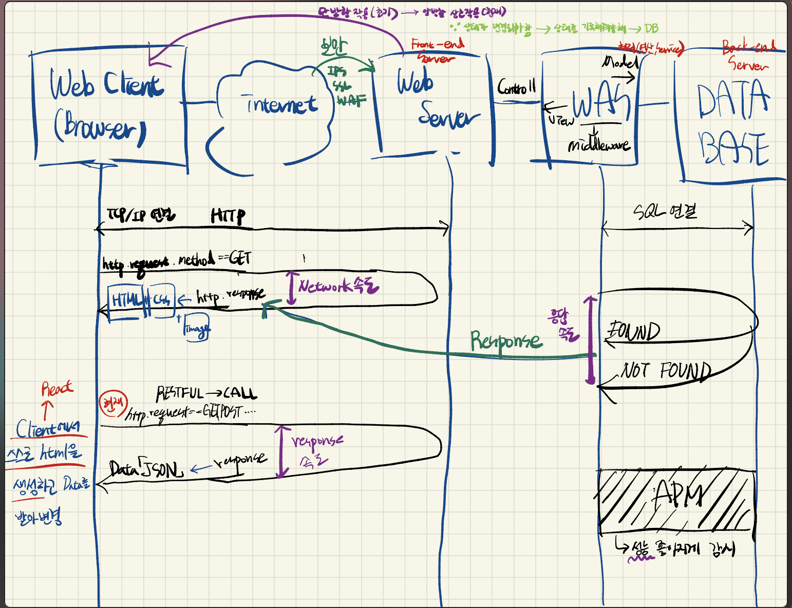 웹 클라이언트(=browser)는 서버로의 인터넷 연결을 오픈하고 컨텐츠 요청을한다.