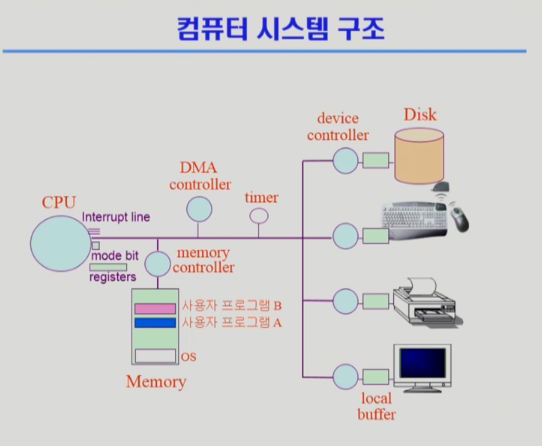 ✔️ device controoler(장치 제어기) : 각 장치를 통제하는 일종의 작은 CPU ➡️ hardware