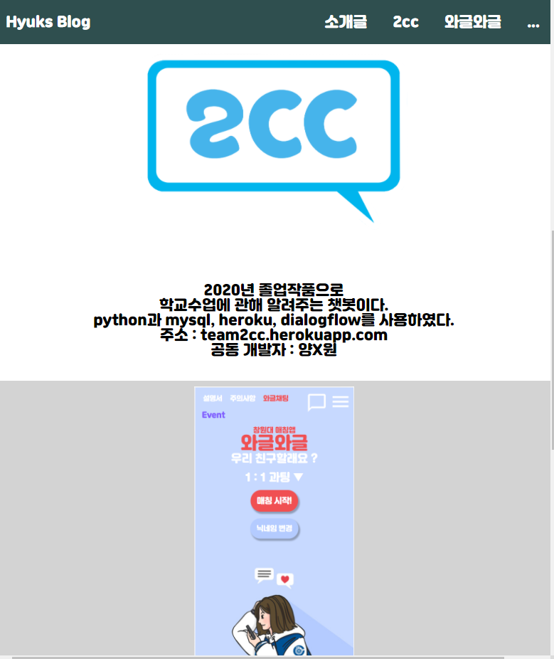 같이 만든 친구와 나 둘다 cc였어서 팀명을 2cc로 정했었다... (현재는 ... 또르륵...)
