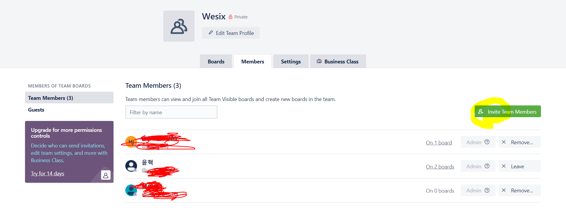 board에 추가하지않고 Team에 팀원을 추가해도 board를 같이 사용할 수 있따.
