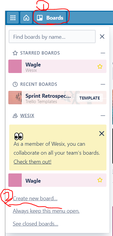 그 후에, 밑에 있는 Create new board...를 누르면 (2)