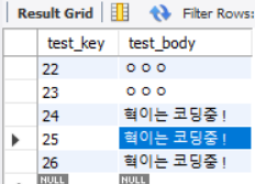 나는 tistory라는 database와 test라는 table을 만들거다.