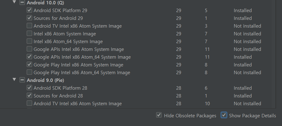 Android Studio를 설치하고나서 SDK manager에 들어가서