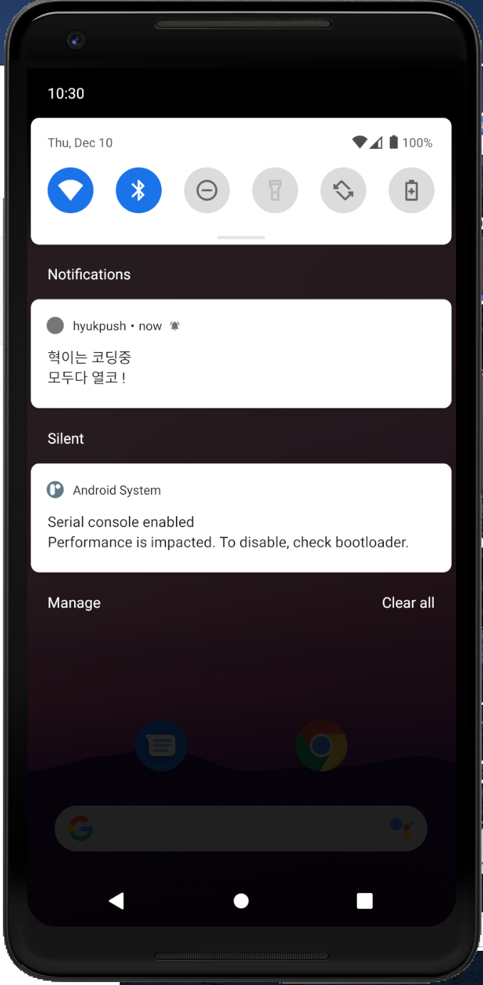 이걸로 android는 끝이다. 한번 메세지를 보내보자
