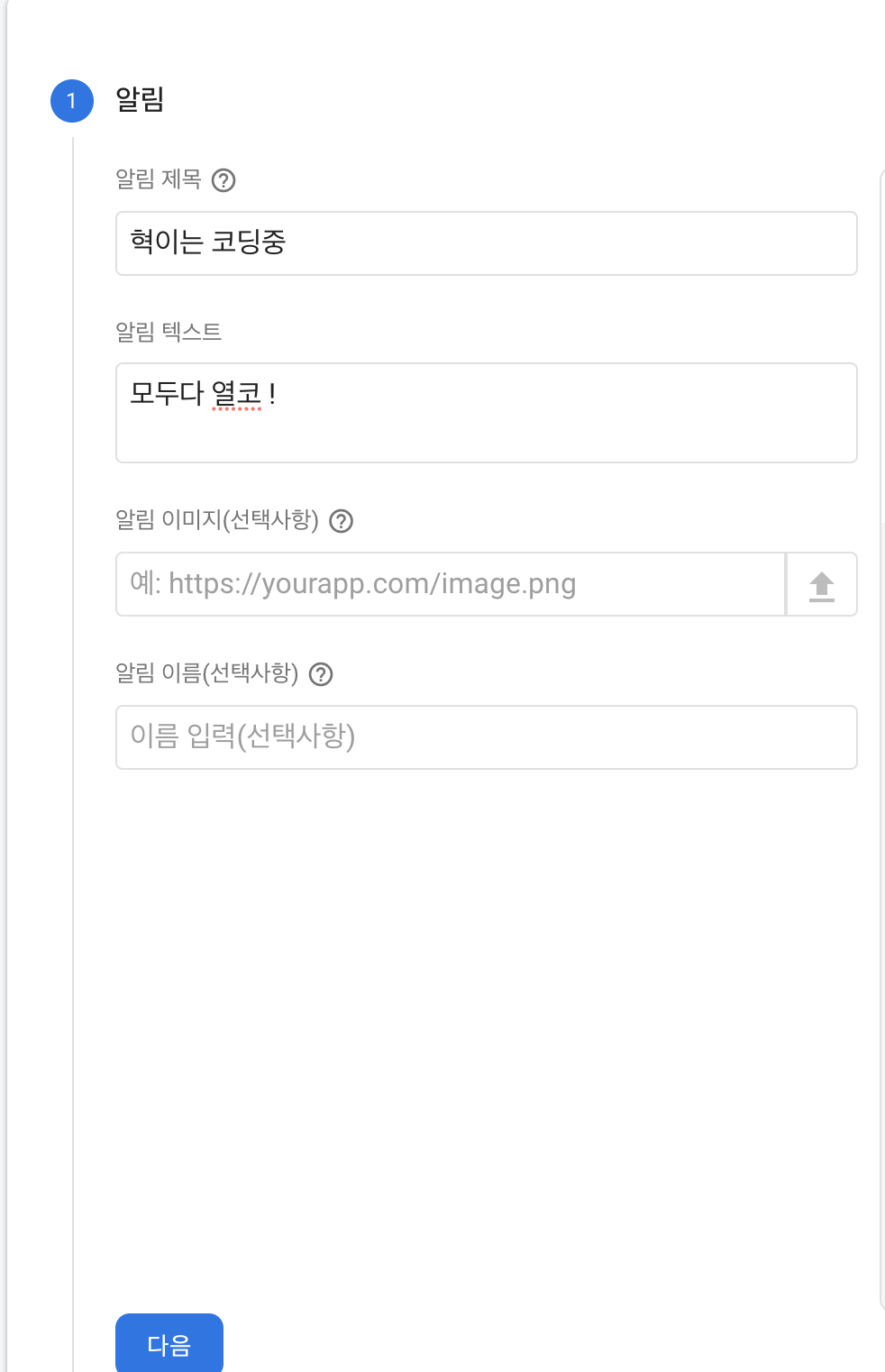 좌측에 성장 > Cloud Messagin을 누르면 위와 같은 페이지가 나온다.
