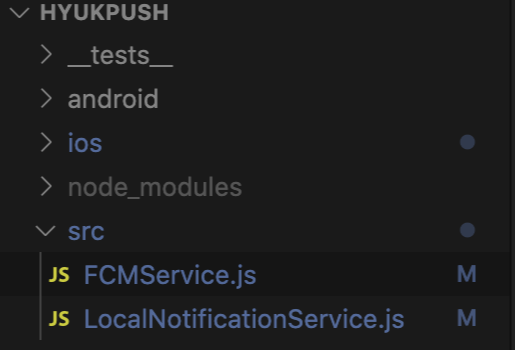 src 폴더내에 FCMService, LocalNotificationService.js 두개를 만들었다.