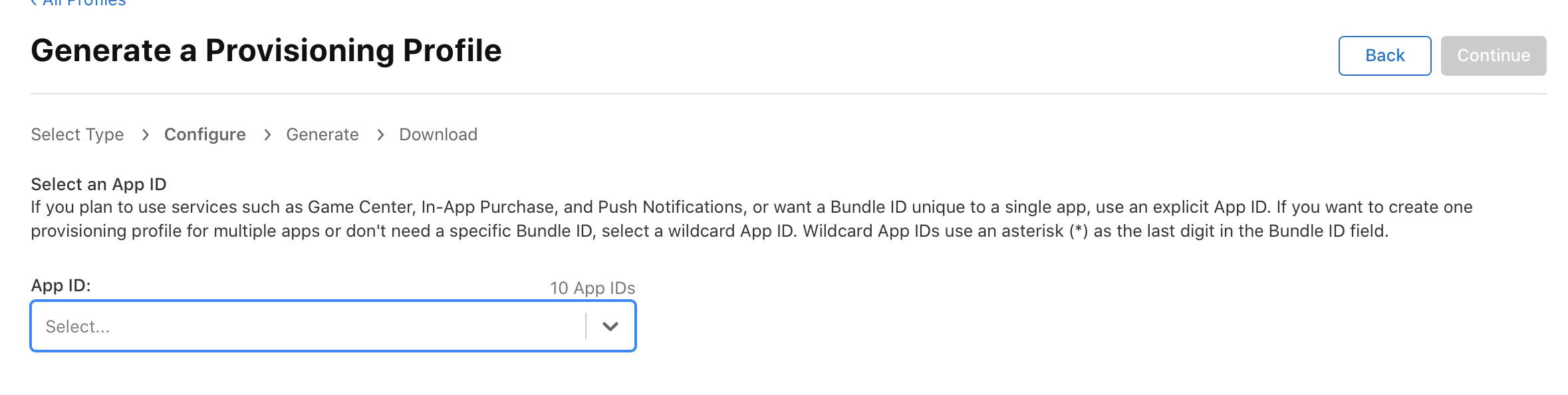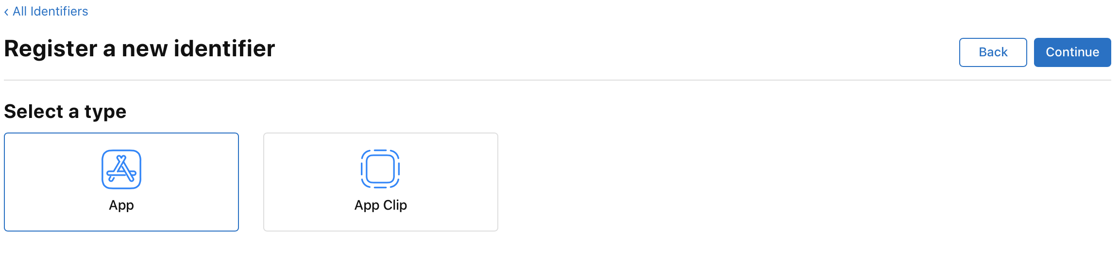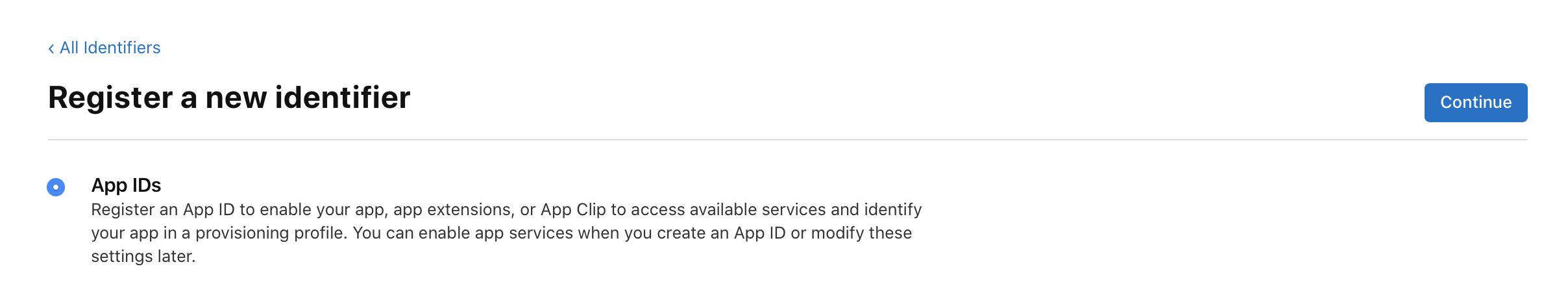 자신의 App id를 선택하고 Continue하고