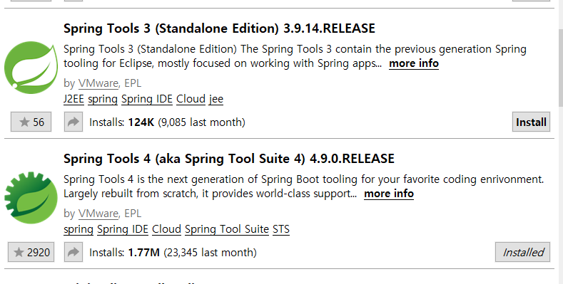 Help - Eclipse Marketplace.. 를 들어가서 STS를 검색하자