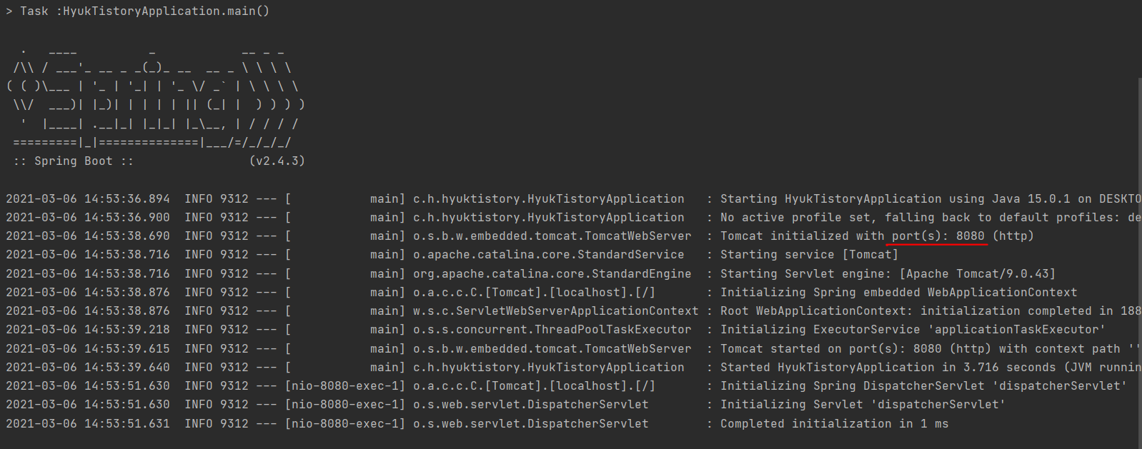 SpringApplication.run(HyukTistoryApplication.class, args);