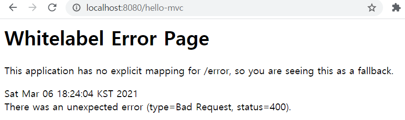 위 코드를 추가해준다. @RequestParam의 Parameter를 name으로 받는다. required=true가 기본값이기 때문에 꼭 있어줘야하는 값이다.