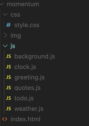 오늘은 니꼬쌤의 바닐라 js로 momentum 클론 코딩을 해따