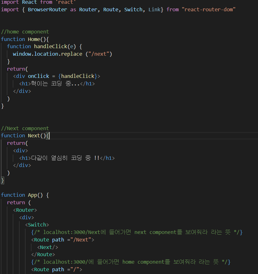 방법은 여러가지가 있습니다. window.location.href, replace 그리고 Link to를 이용하는 방법등이 있습니다.