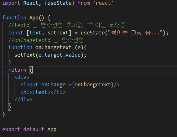 코드를 직접입력 해보시면 아시겠지만 저기 input창에 입력하시면 바로바로 밑에 글자가 바뀌는 것을 아실수 있습니다.